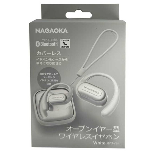 ナガオカ オープンイヤー型ワイヤレスイヤホン 左右分離 Bluetooth対応 USB ホワイト NOW10WH