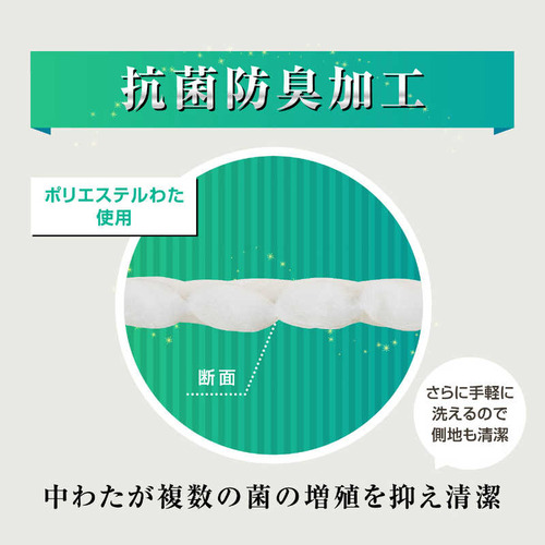 ●手軽にお洗濯OKで、抗菌防臭機能もプラスした「ベットパッド」。●詰物:ポリエステル100% (抗菌防臭加工)●側地:ポリエステル65%、綿35%※4角スベリ止めゴム付※洗濯ネット付●抗菌防臭加工:抗菌防臭加工が施されています。●ウォッシャブル:水洗い可能な商品です。●幅220×長さ195cm 2台ベッドをくっつけて使用しているお客様に最適(サイズをお確かめください)