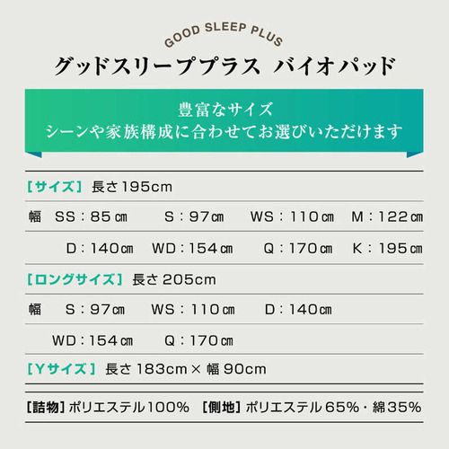 フランスベッド 【ベッドパッド】グッドスリーププラス バイオパッド(S+M/220×195cm/キナリ)