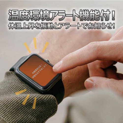 ●フルタッチ検温器付スマートウォッチ 検温器付きで熱中対策に。検温で温度が一定以上(温度設定可能)を超えると、振動し画面が赤くなりアラームでお知らせ。フルタッチパネルで簡単操作。腕に装着するだけで体温を注意してくれるウォッチです。●充実の健康管理機能を搭載 検温機能以外にも、歩数、消費カロリー、スポーツ、睡眠測定、レディスサイクル、心拍数、血中酸素レベル測定、SMS/SNS電話通知、IP67防水・防塵、スポーツ対応、スマホ発見、気象情報、音楽の操作、多国語対応、メイン画面カスタマイズ を搭載。1年365日の健康管理にピッタリです。※医療機器ではありません。測定値は参考値としてお考えください。※本製品はスマートフォン対応商品です。時刻・日付はペアリングすることで自動的にスマートフォンと同期します。