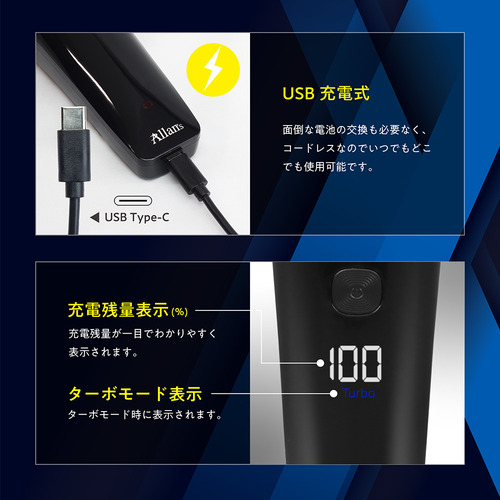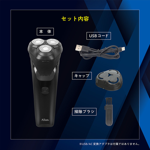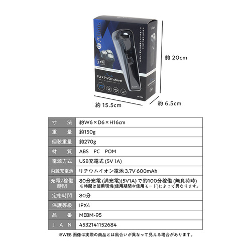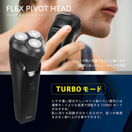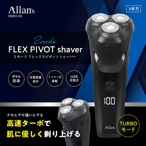 マクロス MEBM-95 2モード フレックスピポットシェーバー Allan’s TURBOモード搭載 IPX4防水 USB充電 ブラック