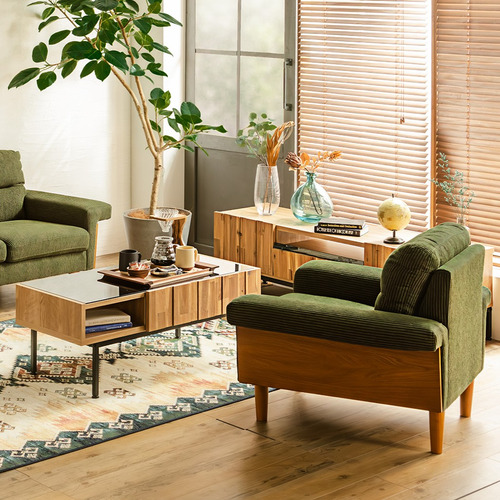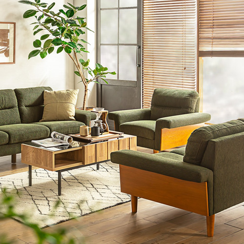 BALシリーズは、温もりある天然木のフレームと、優しい肌ざわりのコーデュロイ生地を組み合わせたこだわりのソファ。