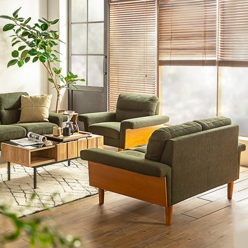 BALシリーズは、温もりある天然木のフレームと、優しい肌ざわりのコーデュロイ生地を組み合わせたこだわりのソファ。