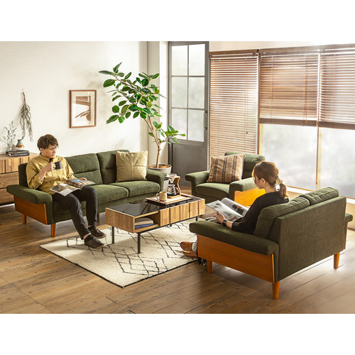 材質:前板:ウォールナット突板(ラッカー塗装) 脚部:ラバーウッド (ラッカー塗装) 張地:ポリエステル 芯材:木枠・Sバネ・ウェービングベルト 中身:ウレタンフォーム