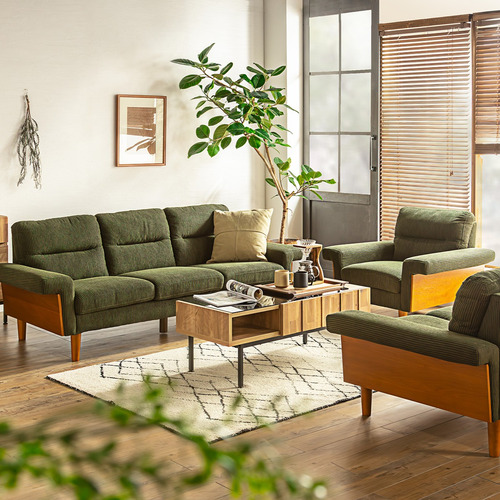 BALシリーズは、温もりある天然木のフレームと、優しい肌ざわりのコーデュロイ生地を組み合わせたこだわりのソファ。