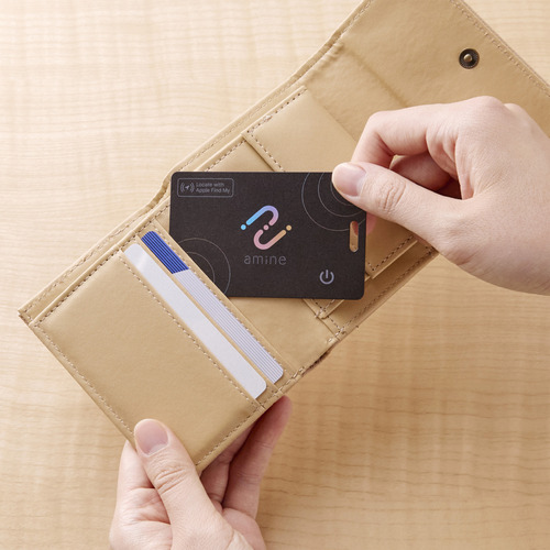 ●iPhoneの「探す」アプリから位置を確認!財布やカードケースなど大切な荷物に入れて位置情報を追跡できる、カード型スマートトラッカー・amine(あみね)です。充電や電池交換は不要で、入れっぱなしで最大5年(※)使えます。財布に入れてもかさばらない、約1.7mmの超薄型タイプです。 ※接続状態での最大値
