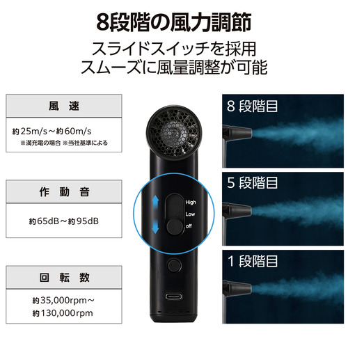エレコム AD-ALB04BK エアダスター 電動 USB 充電式 8段階風量調整 コンパクト 軽量 ブラック