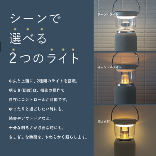 中央のオレンジ色のライトは、まるでキャンドルのように複雑なゆらめき、眩しさのないやわらかな灯りをともします。
