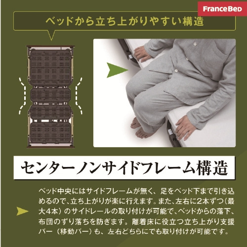 フランスベッド製の様々なサイドレールの取り付けが可能です(最大4か所)