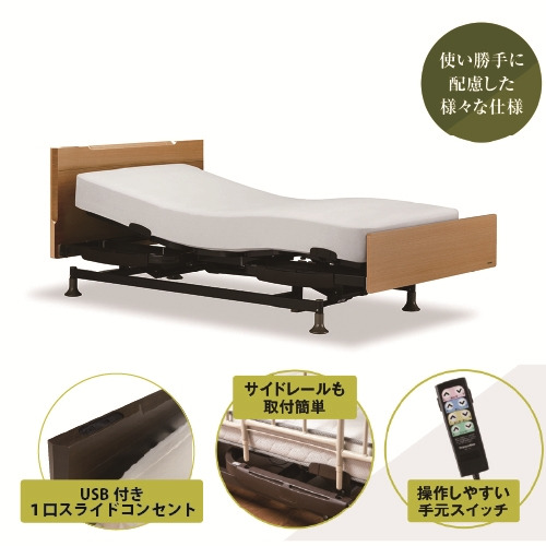 フランスベッド製の様々なサイドレールの取り付けが可能です(最大4か所)
