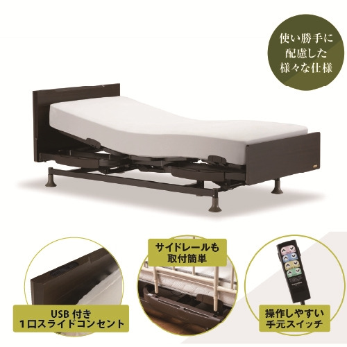 フランスベッド製の様々なサイドレールの取り付けが可能です(最大4か所)
