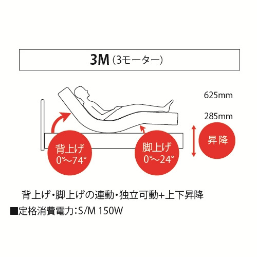 背上げ足上げの2M、さらに上下昇降可能な3Mが選べます