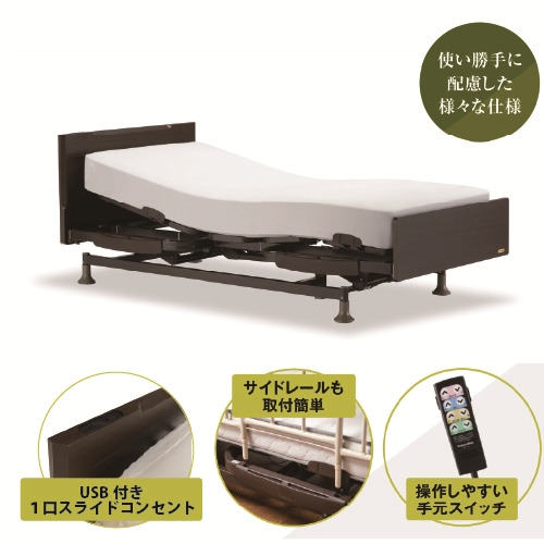 フランスベッド製の様々なサイドレールの取り付けが可能です(最大4か所)