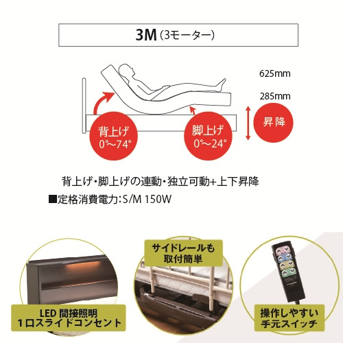 背上げ足上げに加え、上下昇降可能な3Mです