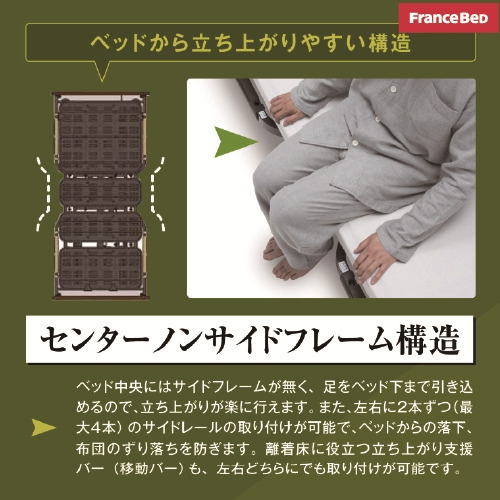 フランスベッド製の様々なサイドレールの取り付けが可能です(最大4か所)