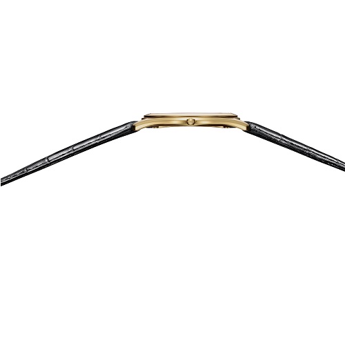 ●文字板は、艶やかでシックなブラックに、金色の針とインデックスが上品かつエレガンスな印象を与えます。