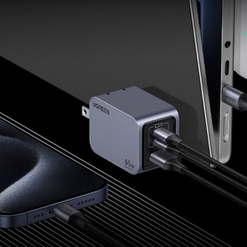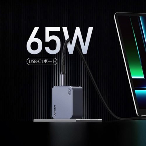 UGREEN UGR-OT-000008 Nexode Pro PD 急速充電器 65W GaN USB-C×2ポート USB-A×1ポート Gray 25870