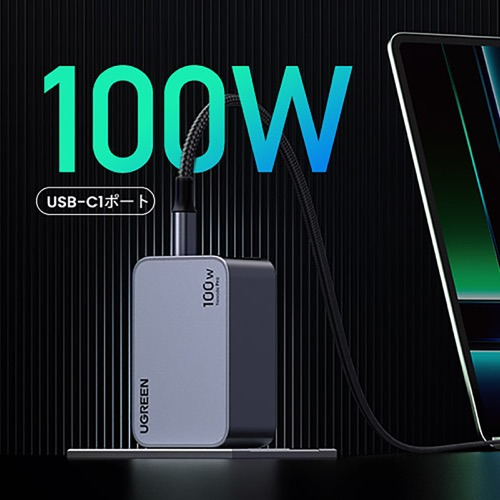 UGREEN UGR-OT-000010 Nexode Pro PD 急速充電器 100W GaN USB-C×2ポート USB-A×1ポート Gray 25873