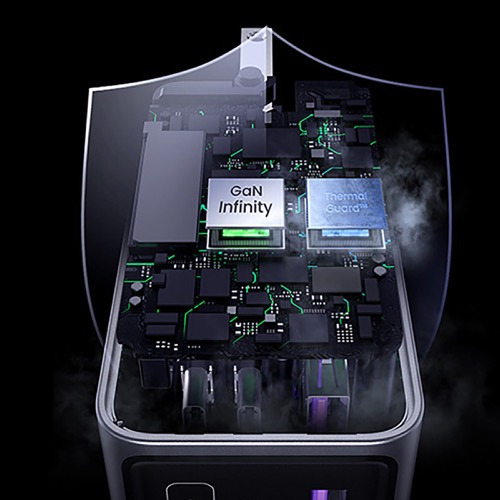 UGREEN独自技術Thermal Guardは、ミリ秒単位の温度検出により過熱、過充電、過電流を制御します。温度変化をリアルタイムで検知し、適切な電流をデバイスにスマートに分配することで、デバイスのバッテリー寿命の劣化を防ぎながら安心の高速充電を実現します。また、シェルは耐火性および難燃性の高級PVC素材で作られており、衝撃や落下からの保護を強化。高い安全性を誇ります。