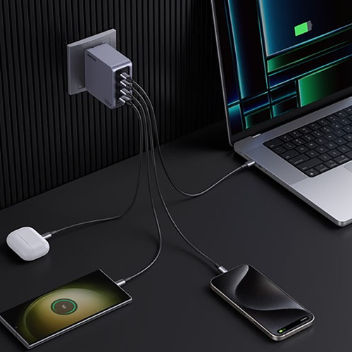 Nexode Pro 160Wは、スマートフォンやスマートウォッチ、タブレット、そしてMacBook Proなどのノートブックまで、最大4台のデバイスを同時に充電可能です。