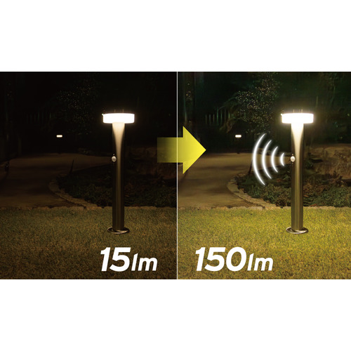 周囲が暗くなると自動点灯し、人が近づくとさらに明るく点灯するセンサー機能付き。