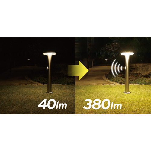 周囲が暗くなると自動点灯し、人が近づくとさらに明るく点灯するセンサー機能付き。