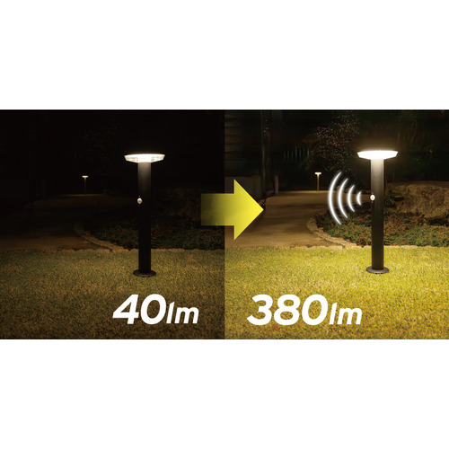 周囲が暗くなると自動点灯し、人が近づくとさらに明るく点灯するセンサー機能付き。