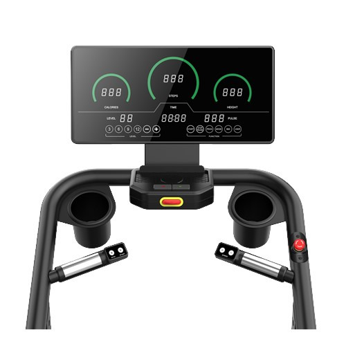 パネルにカロリー・歩数・高度・段階・時間・心拍数の項目が表示されます。手元操作スイッチが装備されているので、ハンドルを握った状態で速度調節が可能。