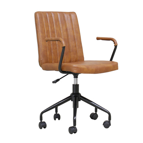 ●アンティークレザー調生地を採用したレトロなオフィスチェアー。●座面はガス圧式昇降で上げ下げも楽々。●肘を外してもご利用可能。●座面高:44-50cm。●カラー:ライトブラウン。●生産国:中国。