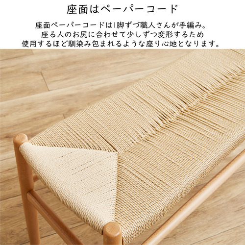 ●きめ細かい木目のビーチ材を使用し、滑らかな触り心地、シンプルデザインや北欧インテリアにピッタリな木材です。●ペーパーコードは樹脂を浸透させてねじった紙紐を使用しとても頑丈です。●座る人のお尻に合わせて少しずつ変形するため使用するほど馴染み包まれるような座り心地となります。