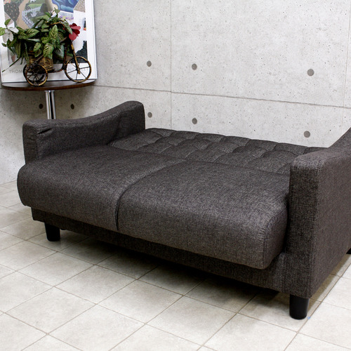 後藤家具物産 収納庫付の2人掛ソファー ポニーII/ブラウン ファブリック ミニベッド 幅120cm SO-05-2P-BR