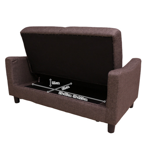 ●座面を持ち上げるとワンタッチでミニベッドにチェンジ!座面下に収納庫付の3人掛けソファー!ブラウン色!