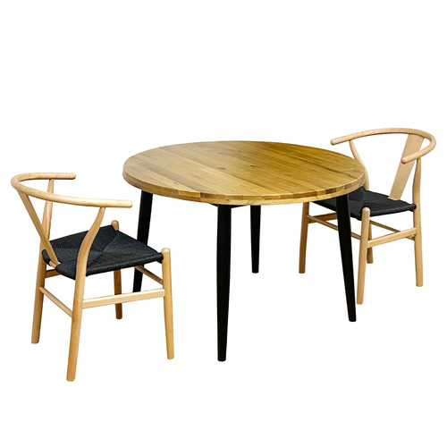 ●一枚板風オーク無垢材を使用した高級感ある幅110cm円卓ダイニングテーブル3点セット!チェアーはNABK色2脚!