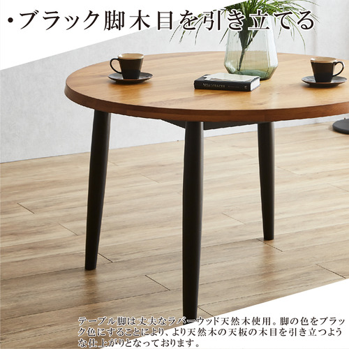 ●一枚板風オーク無垢材を使用した高級感ある幅110cm円卓ダイニングテーブル3点セット!チェアーはBKWH色2脚!
