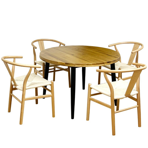 後藤家具物産 オーク円卓ダイニング5点セット 幅110cm テーブル+椅子4脚 ナチュラル VT-01-EN-5-NAWH