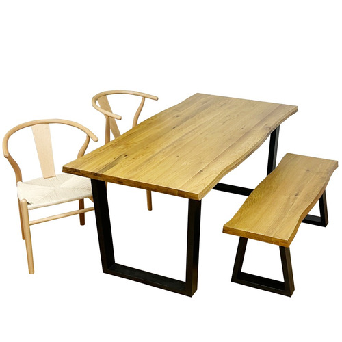 ●一枚板風オーク無垢材を使用した高級感ある幅160cmダイニングテーブル4点セット!チェアーはNAWH色2脚、幅115cmオークベンチ1脚!