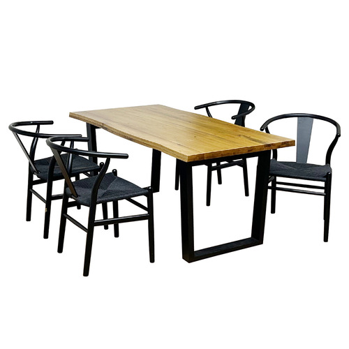 ●一枚板風オーク無垢材を使用した高級感ある幅160cmダイニングテーブル5点セット!チェアーはBKBK色4脚!