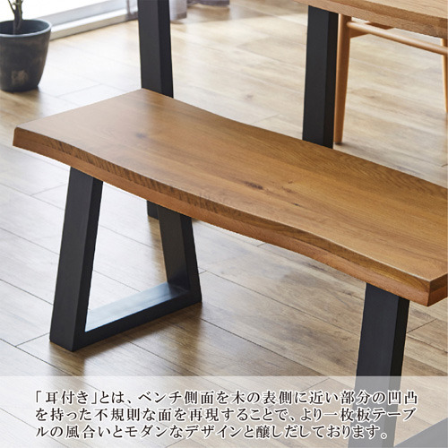 ●一枚板風オーク無垢材を使用した高級感ある幅180cmダイニングテーブル4点セット!チェアーはNAWH色2脚、幅130cmオークベンチ1脚!