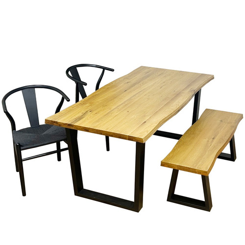 ●一枚板風オーク無垢材を使用した高級感ある幅180cmダイニングテーブル4点セット!チェアーはBKBK色2脚、幅130cmオークベンチ1脚!