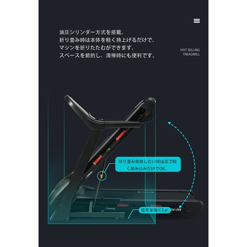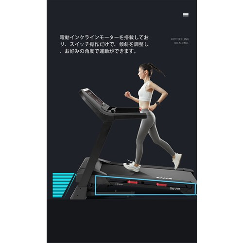 電動インクラインモーターを搭載しておりスイッチ操作だけで傾斜を調整してお好みの角度で運動ができます。