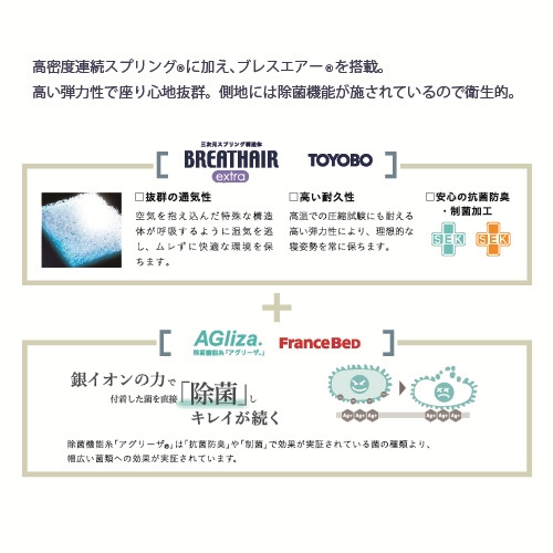●内部に湿気をためこまず、いつでも爽やかな寝心地を実現。鋼線の劣化を防ぎスプリングの寿命を守ります。