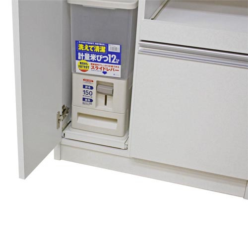 ●完成品で組立不要!12キロの米びつ付き国産レンジ台!扉タイプ!ホワイト色