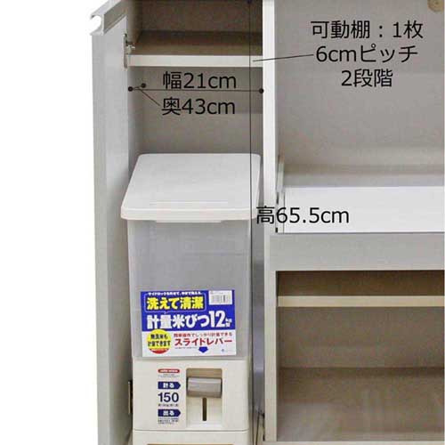 後藤家具物産 幅60cm レンジ台 パートナー2型/ホワイト色 12kgの米びつ付き 完成品 家具の産地大川市 国産 RB-03-2-WH
