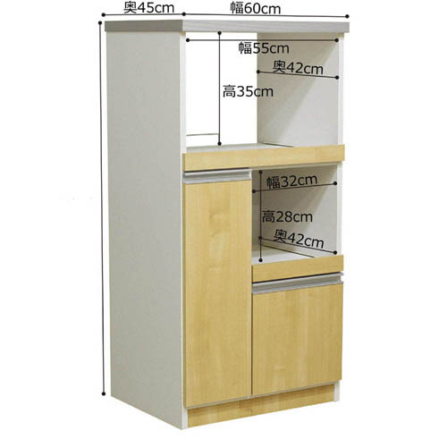 後藤家具物産 幅60cm レンジ台 パートナー2型/ナチュラル色 12kgの米びつ付き 完成品 家具の産地大川市 国産 RB-03-2-NA