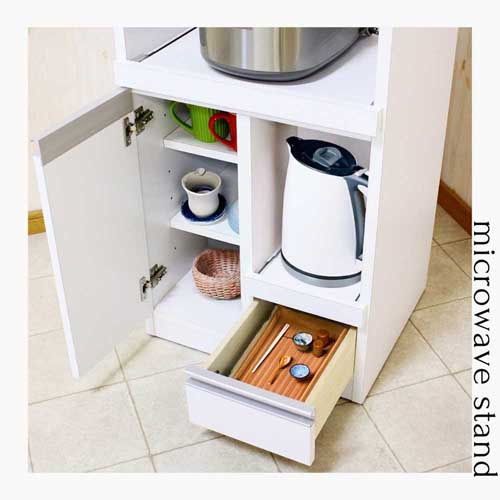 ●すぐに使える完成品で組立不要。●家具の産地【大川市】にて生産した国産コンパクトレンジ台。●スライドカウンター(大)(小)は、レール付きで出し入れ楽々。●スライドカウンター(大)部分は、1口コンセント付き。●スライドカウンター(大)内寸:幅43.5×奥38.5×高41cm。●スライドカウンター(小)内寸:幅18×奥38.5×高31.5cm。●引出し(小)内寸:幅18×奥33×高9cm。●扉部分内寸:幅20.5×奥39×高48cm。●カラー:ホワイト色。●生産国:日本。
