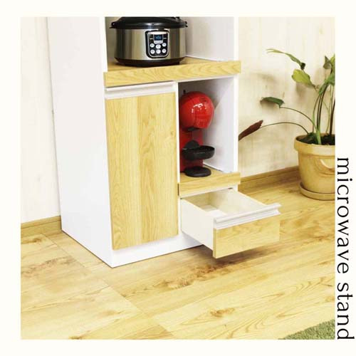 ●すぐに使える完成品で組立不要。●家具の産地【大川市】にて生産した国産コンパクトレンジ台。●スライドカウンターは、レール付きで出し入れ楽々。●スライドカウンター部分は、1口コンセント付き。●スライドカウンター内寸:幅43.5×奥38.5×高41cm。●引出し(大)内寸:幅39×奥33.5×高16cm。●引出し(小)内寸:幅41×奥33.5×高10.5cm。●カラー:ナチュラル色。●生産国:日本。