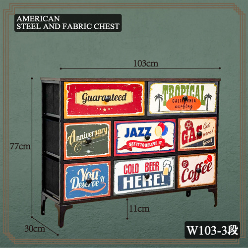 ●POPでヴィンテージ仕上げの幅103-3段チェスト