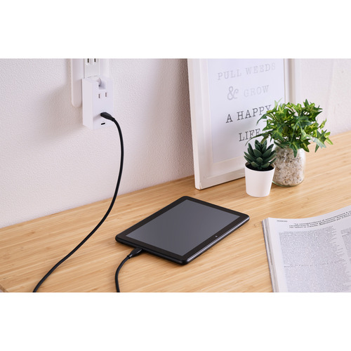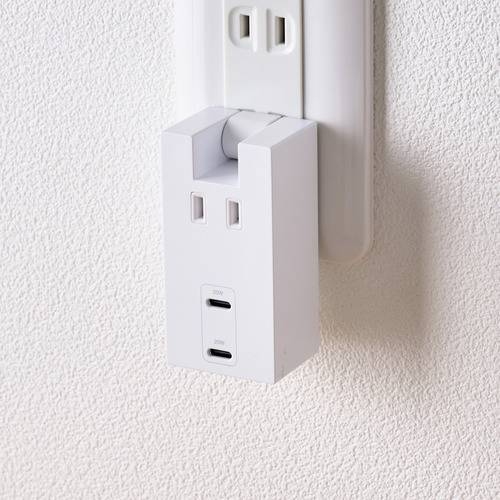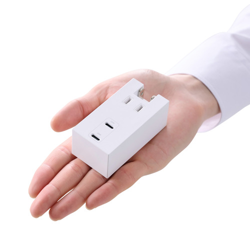 ●ACアダプター不要。スマートフォンやタブレットなどの充電を、これ1台で。1つのAC差込口、2つのUSB Type-C(TM)ポートが一体になったモバイルUSBタップです。コンパクトサイズで出張や旅行などの持ち運びに便利です。