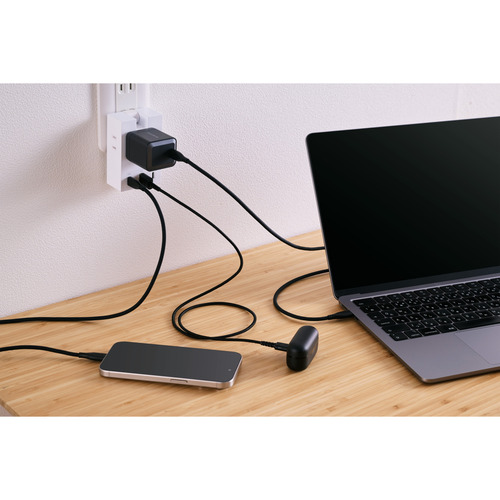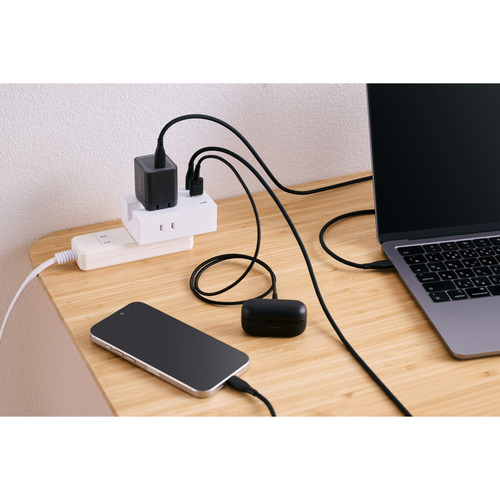 USB側定格出力(3ポート使用時):USB Type-Cポート+USB Type-Cポート+USB-Aポート:合計20W(5V/4A)(各USB Type-C 15W(5V/3A)、USB-A 12W(5V/2.4A))