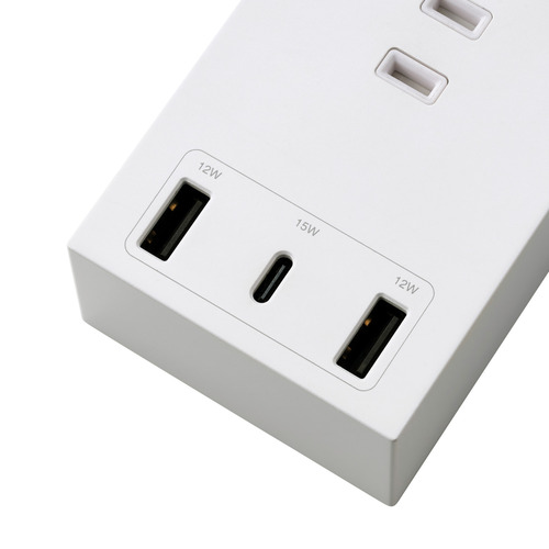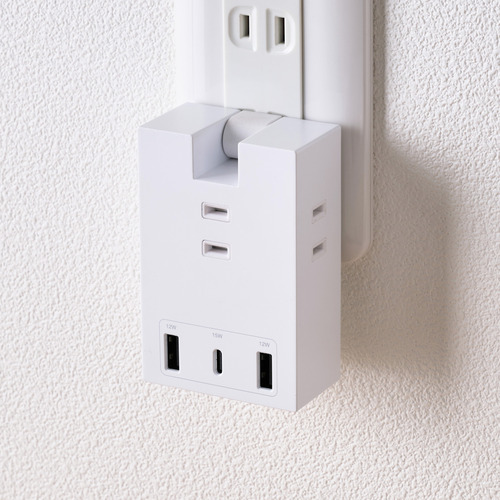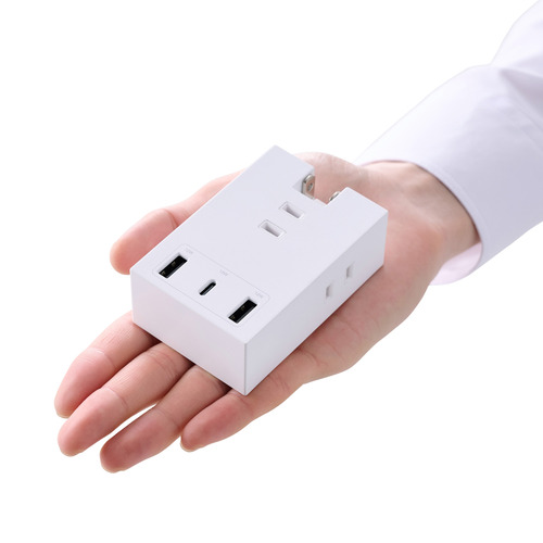 ●ACアダプター不要。スマートフォンやワイヤレスイヤホンなどの充電を、これ1台で。3つのAC差込口、2つのUSB-Aポート、1つのUSB Type-C(TM)ポートが一体になったモバイルUSBタップです。最大6台のデバイスを接続でき、コンセントの少ない場所で活躍します。設置時にコンセントカバーと壁との段差でガタつき、プラグが抜けそうになるのを防ぐ「Support Bar」を搭載しています。
